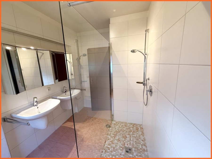 Das Haus bietet ein modernes, großzügiges Badezimmer sowie ein separates, helles Gäste-WC.