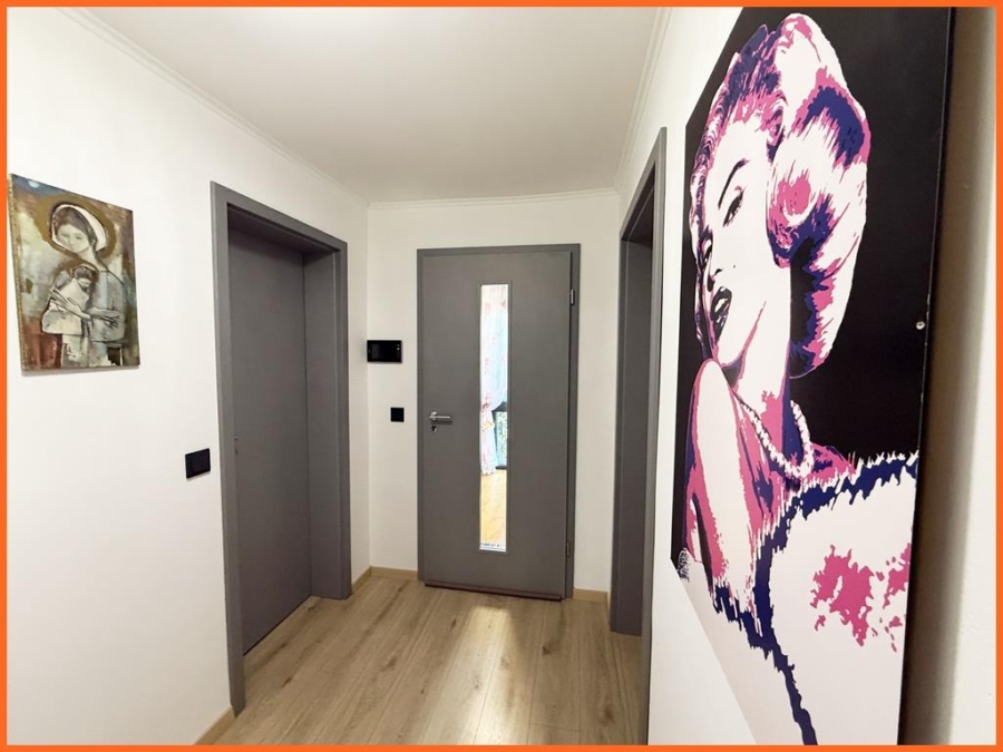 Die aktuelle Raumaufteilung ist wie folgt: im Erdgeschoss befindet sich ein großer Wohn-Essraum mit offener Küche und direkten Zugang auf die überdachte Terrasse und in den Garten. Von der Diele erreichen Sie auch das moderne Bad. Sie können auch eine Wand einziehen und haben dann eine perfekte 2 Zimmer-Wohnung.