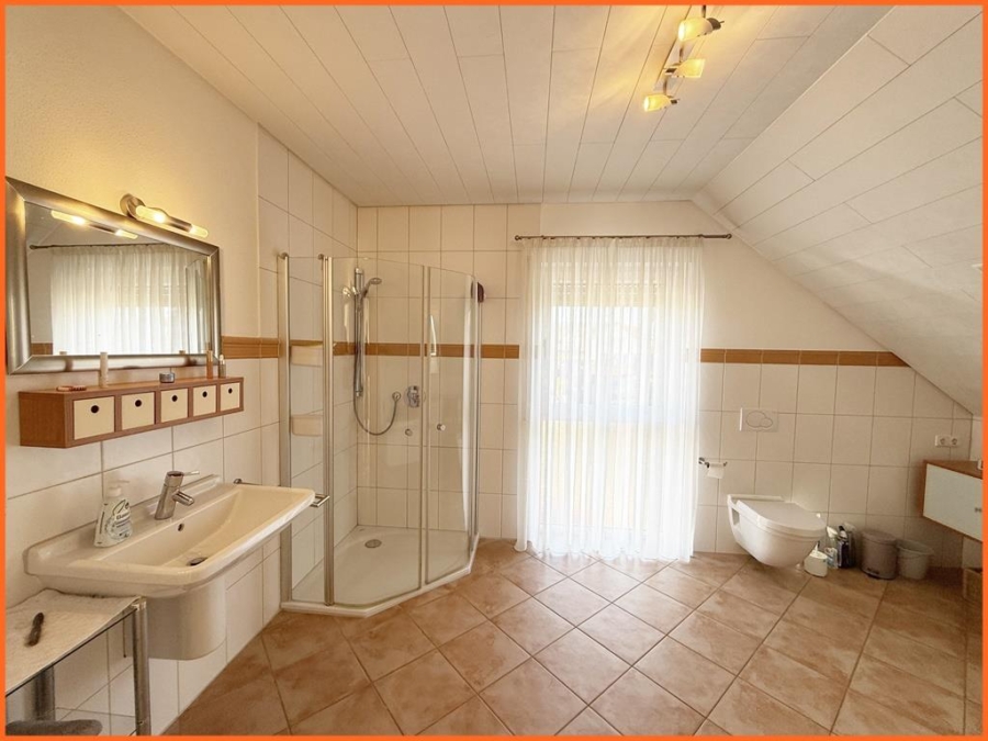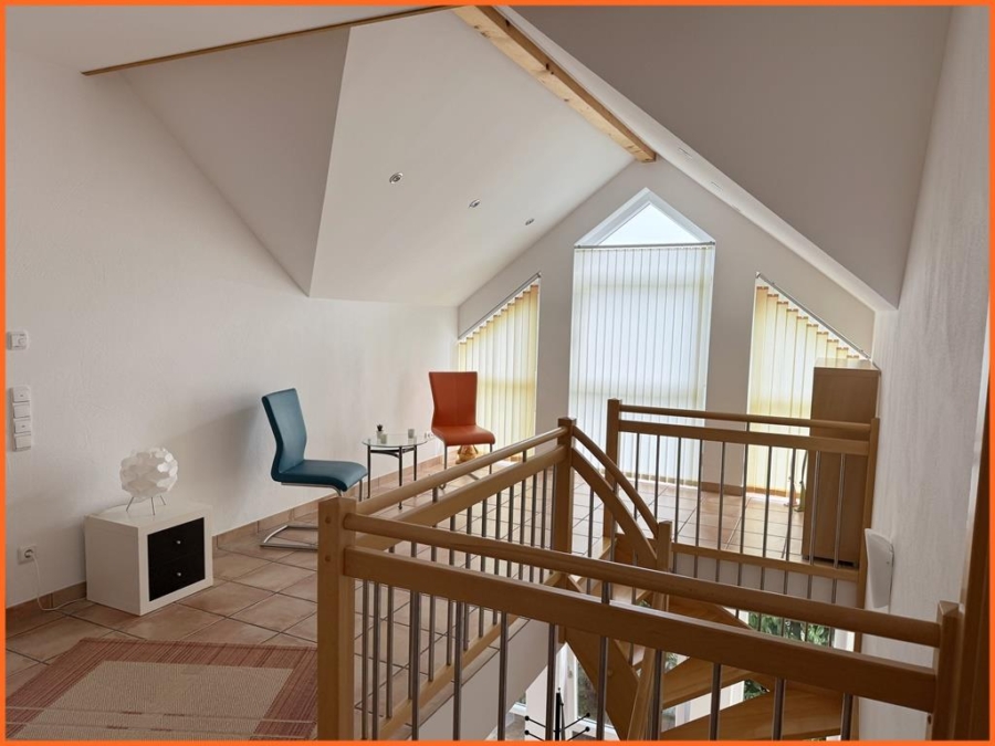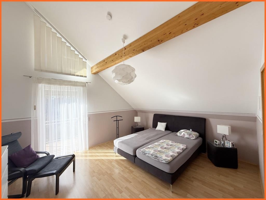 Im Obergeschoss gibt es ebenfalls eine helle Diele, 2 Kinderzimmer und das Elternschlafzimmer mit einem großzügigen Ankleideraum.Teilweise haben die Zimmer Südbalkon. Das große Familienbad bietet Dusche, Wanne, großes Waschbecken, WC und viel Licht.