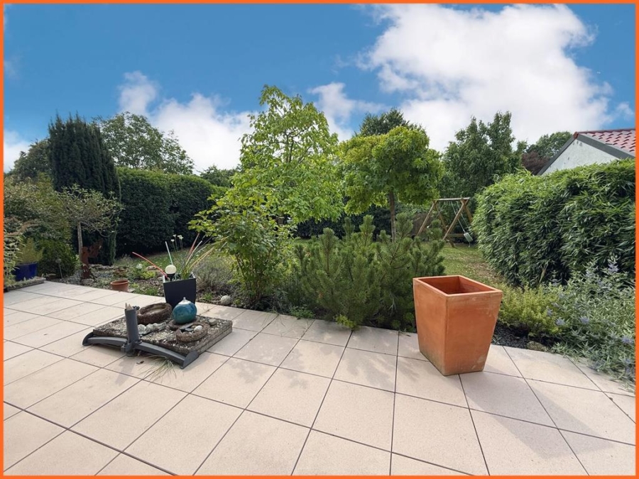 Das herrliche eingewachsene Grundstück ist fast 600 m² große und so geschickt angelegt, dass es fast uneinsehbar ist. Terrasse und Garten sind optimal nach Süden ausgerichtet. Hinter dem Haus ist eine reine, unbebaubare Grünzone mit direkten Ausgang zu einem kleinen Feldweg. Hier können Sie mit dem Morgensport starten oder mit Ihre Hund losgehen.