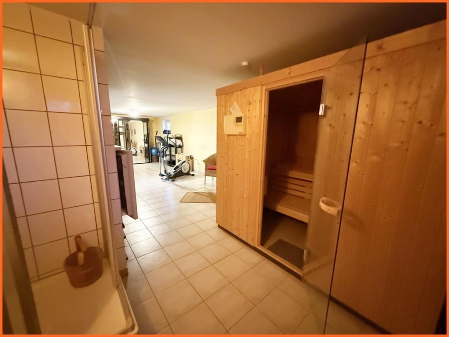 Das Untergeschoss bietet einen große Hobby-Raum auch für ein Büro oder Gäste-Bereich geeignet, Hauswirtschafts- und Heizraum und einen großen Wellnessbereich für Sport und Gesundheit mit Sauna, Dusche usw..