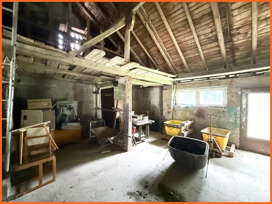 Ein Highlight ist die große Scheune, die sich im einwandfreien Zustand befindet und eine vielfältige Nutzungmöglichkeit bietet. Ursprünglich genutzt als Gewerbebetrieb eines Bauunternehmens. Auch eine landwirtschaftliche Nutzung oder Pferdehaltung sind denkbar. Ggf. kann man weitere Nutzflächen pachten. Zum Haus gehören außerdem 2 Garagen und mehrere PKW-Stellplätze direkt vor der Haustür.