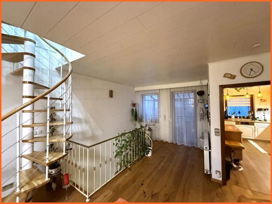Das wohnlich ausgebaute Dachstudio erreichen Sie über eine Wendeltreppe und ist in der Wohnfläche nicht enthalten.