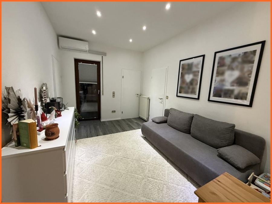Das Haus bietet im Erdgeschoss Diele , Schlafzimmer, Arbeits- oder Relaxzimmer und 2 Bäder. Vom Arbeitszimmer kommen Sie direkt in den fast uneinsehbaren Garten.