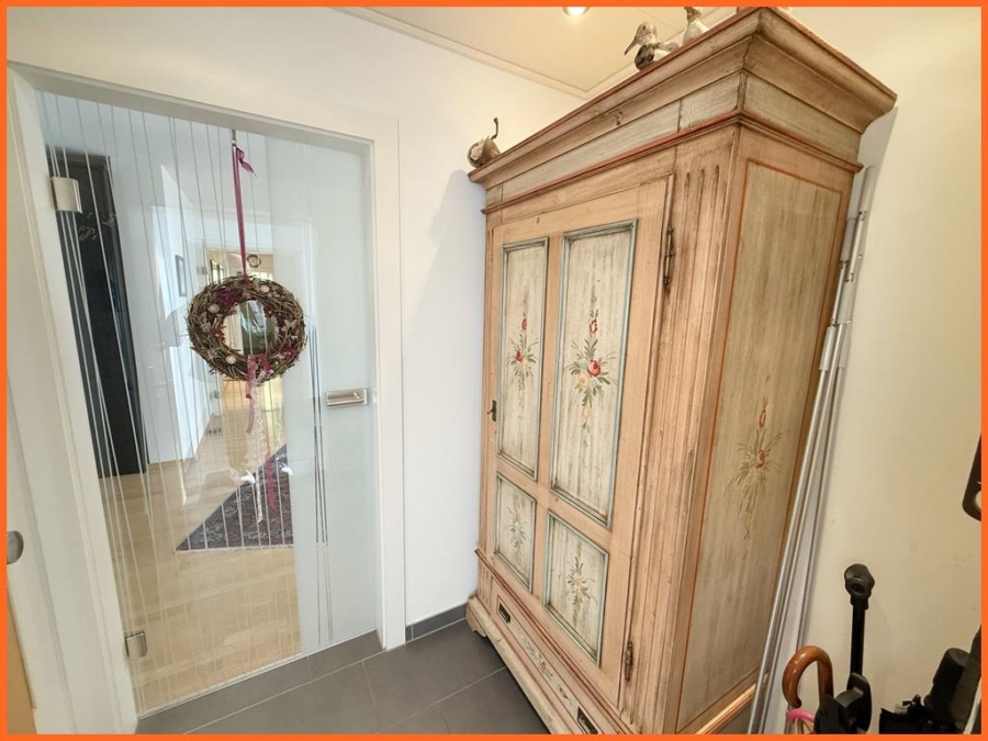Diese stilvolle 5-Zimmer-Wohnung im 1. Obergeschoss eines gepflegten Hauses vereint Wohnen mit Weitblick – im wahrsten Sinne des Wortes. Der Blick ins Grüne begleitet Sie vom ersten Kaffee am Morgen bis zum letzten Sonnenstrahl am Abend. Die große, überdachte Terrasse wird schnell zu Ihrem Lieblingsplatz – ob zum Frühstücken, Entspannen oder für gesellige Abende mit Freunden.