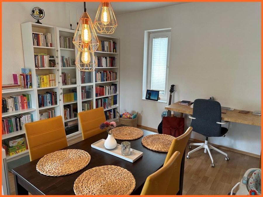 Hier erwartet Sie eine etwa 100 m² große 3 Zimmer-Wohnung mit Tageslichtbad, Gäste-WC, Küche und einem großen Wohn-Esszimmer mit Balkon und Terrasse.