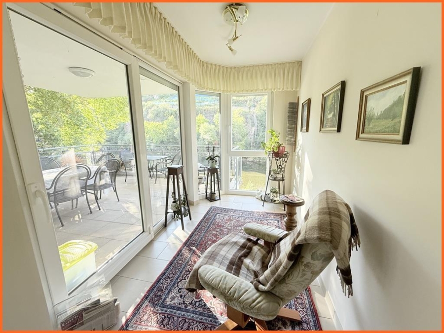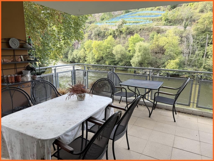 Diese Wohnung, in einem gepflegten, ruhig gelegenen Haus aus 2007, bietet nicht nur Raum, sondern echtes Lebensgefühl. Laue Abende auf der Terrasse, mit Blick auf die Nahe, in die Weinberge und auf die Kauzenburg, bieten Ruhe und Entspannung rund um die Uhr.